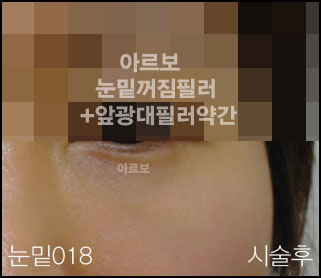 눈밑꺼짐필러+앞광대필러약간 피곤해 보이는 눈밑꺼짐을 해결하면서 광대앞쪽에 살짝 필러로써 볼륨을 주었습니다. 얼굴이 훨씬 입체적으로 보이네요. 필러시술전과 시술직후 모습입니다. 멍 붓기 통증 거의 없어 바로 일상생활 가능하십니다. -저희 아르보의원은 필러시술만 하는 필러중점병원 입니다.-