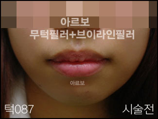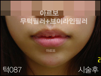무턱필러+브이라인필러 바로 위사진의 정면에서의 모습입니다. 정면에서 보아도 턱끝이 갸름해지면서 돌출되어 보이는 입(돌출입)이 거의 완벽히 해결되었네요. 턱에는 일반적인 필러보다는 하드타입 필러를 사용하시는것이 좋습니다. 필러시술전과 시술직후 모습입니다. 멍 붓기 통증 거의 없어서 바로 일상생활 하는데 지장이 없습니다. -저희 아르보의원은 필러시술만 하는 필러중점병원 입니다.-
