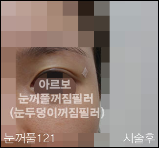 눈꺼풀필러시술 눈꺼풀 꺼진곳을 자연스럽게 필러로 보완해 주었습니다. 필러시술후 눈꺼풀의 모양이 훨씬 좋아져서 얼굴 전체적인 이미지도 훨씬 더 좋아집니다. 필러주입 자국에 간단하게 테이프를 붙여드리기도 합니다. 안붙이셔도 티나지 않구요. 필러시술전과 시술직후 모습입니다. 멍 붓기 통증 거의 없어 바로 일상생활 가능하십니다. -저희 아르보는 필러시술만 하는 필러병원입니다.-