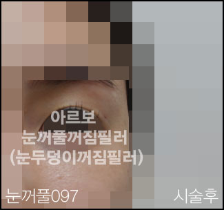 눈꺼풀필러시술 눈꺼풀꺼짐이 심하여 눈뼈 안쪽으로 말려 있는 경우입니다. 피부도 얇아진 상태이고요.시술후 자연스럽게 교정 되었습니다. 눈꺼풀의 꺼짐은 필러시술이 굉장히 효과적입니다. 필러시술전과 시술직후 모습입니다. 멍 붓기 통증 거의 없어 바로 일상생활 가능하십니다. -저희 아르보는 필러시술만 하는 필러병원입니다.-