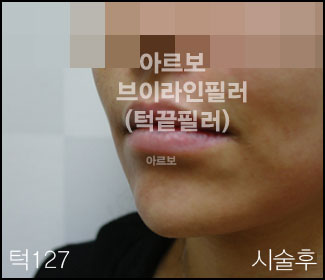 브이라인필러(턱끝필러) 뭉툭한 턱끝을 갸름하게 만들어어서 세련되고 갸름한 턱선을 만들어주는 브이라인필러 시술입니다. 턱필러시술에는 일반적인 필러보다는 점성과 탄성이 좋아서 모양유지력이 좋은 하드타입의 필러를 사용하였습니다. 필러시술전과 시술직후 모습입니다. 통증 붓기 멍 거의 없이 바로 일상생활이 가능하도록 필러시술을 해드립니다. -저희 아르보는 필러시술만 하는 필러병원입니다.-
