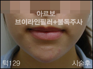 브이라인필러+불독주사 아래턱이 뭉툭한 경우 턱끝을 갸름하게 만드는 브이라인필러시술과 아래턱과 사각턱 사이의 볼의 지방이 많아서 지방의 볼륨을 줄여주는 불독주사를 같이 시술한 경우입니다. 얼굴이 전체적으로 완전히 갸름해졌습니다. 붓기나 멍 거의 없이 바로 일상생활이 가능하도록 필러시술을 해드립니다. -저희 아르보의원은 필러시술만 하는 필러중점병원 입니다.-