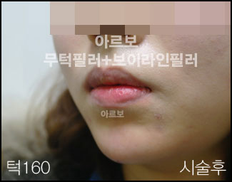 무턱필러+브이라인필러(측면) 턱필러시술의 가장 큰 효과는 돌출된 입의 교정효과입니다. 더불어서 턱끝을 갸름하게 살짝만 만들어주면 브이라인형의 얼굴이 됩니다. 위의 시술전후 사진 보시면 돌출입 교정의 효과 확실합니다. 바로 위의 사진이 정면에서의 모습입니다. 붓기나 멍 거의 없이 바로 일상생활이 가능하도록 필러시술을 해드립니다. -저희 아르보의원은 필러시술만 하는 필러중점병원 입니다.-