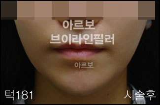 브이라인필러 턱끝을 아주 자연스럽게 브이라인으로 만든 경우입니다. 아주 뽀족한 브이라인을 원하시는 경우도 있지만 아주 자연스러운 브이라인을 원하시는 경우도 있습니다. 바로 세안이나 화장등 일상생활이 가능하십니다. -저희 아르보는 국내에서는 거의 유일하게 필러시술(보톡스포함)만 하는 필러병원입니다.-